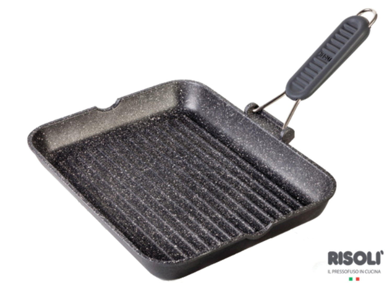 Item: Risoli Rectunglar Granito Grill with Folding Silicon Handle -36x26cm