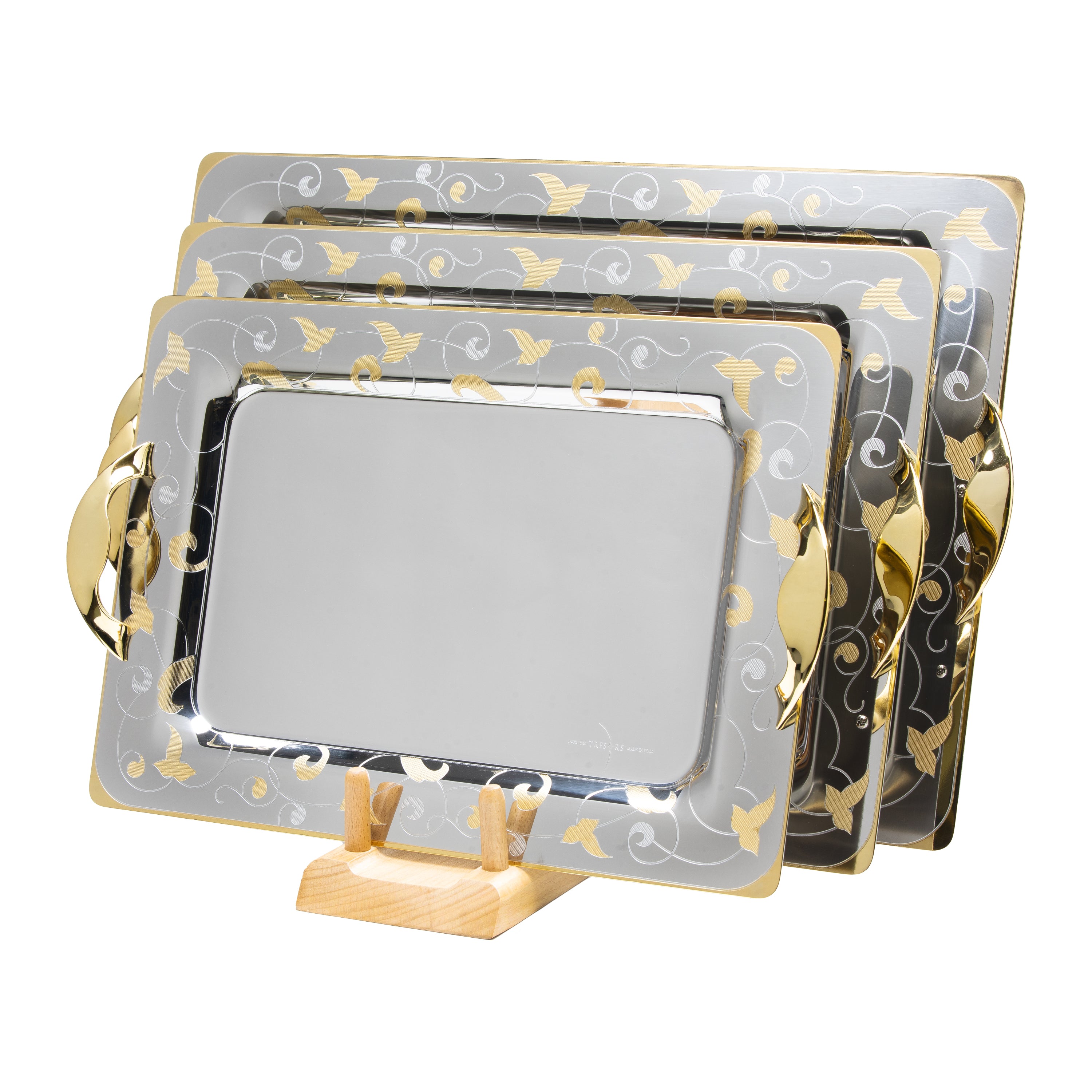 Item: Tresors Rectangular Tray with Handles, 3 Pieces -Made in Italy -Silver & Gold -Stainless Steel 18/10
