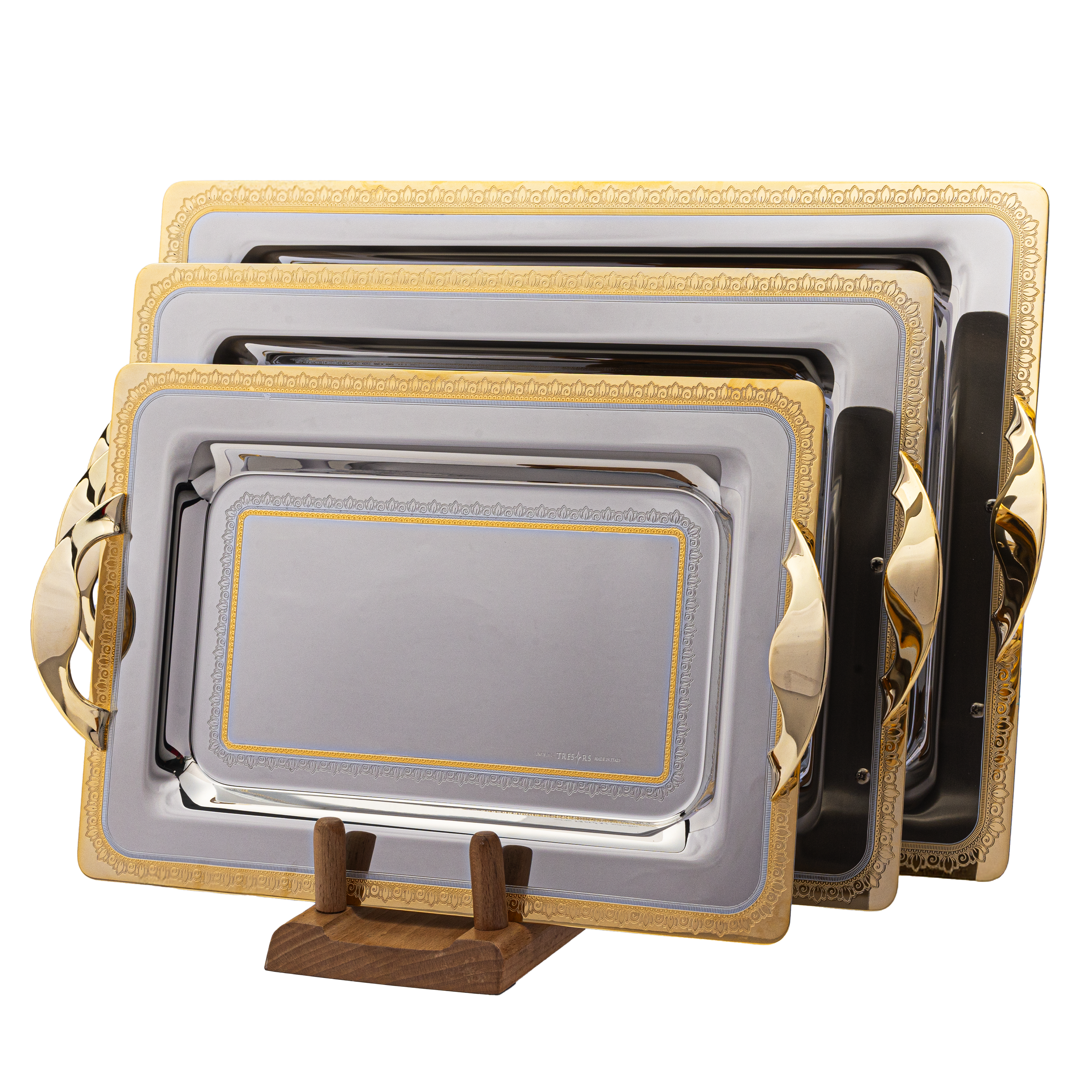 Item: Tresors Rectangular Tray with Handles, 3 Pieces -Made in Italy -Silver & Gold -Stainless Steel 18/10