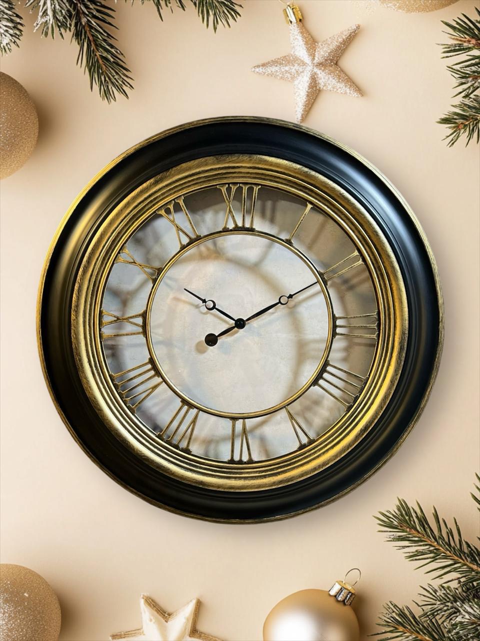 Wall Clock -60.2x60.2 cm -Black & Gold